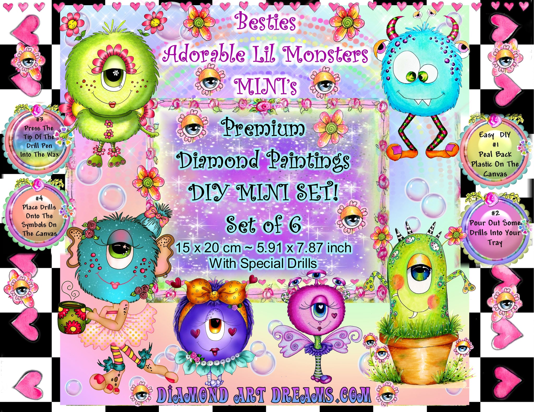 NEW~ FREE SHIPPING ~Premium DIY Mini "Adorable Lil Monsters BESTIES" Set of 6 Paintings (Copy)